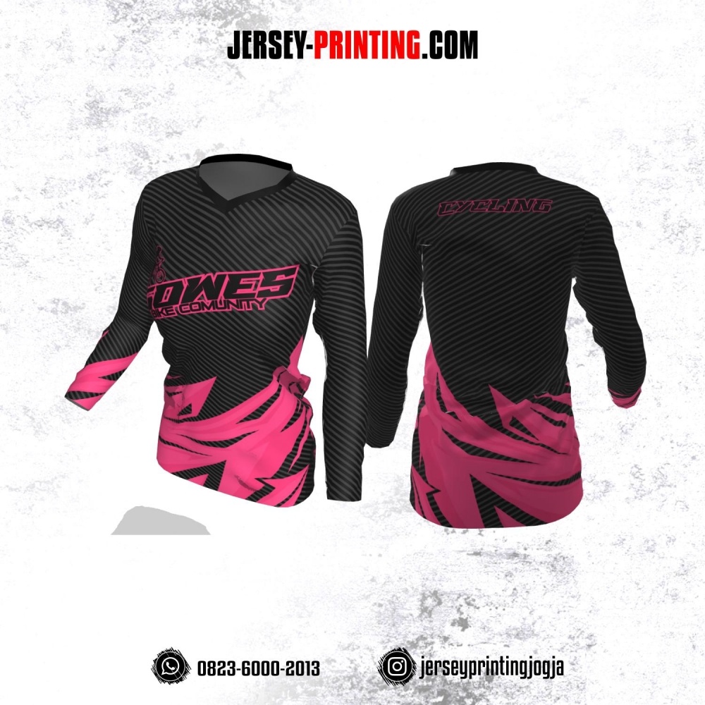 Jersey Cewek Gowes Sepeda Hitam Pink Motif Stripe Abu-abu Lengan Panjang