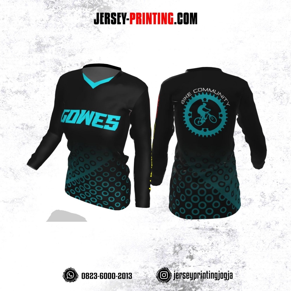 Jersey Cewek Gowes Sepeda Hitam Motif Geometris Biru Lengan Panjang