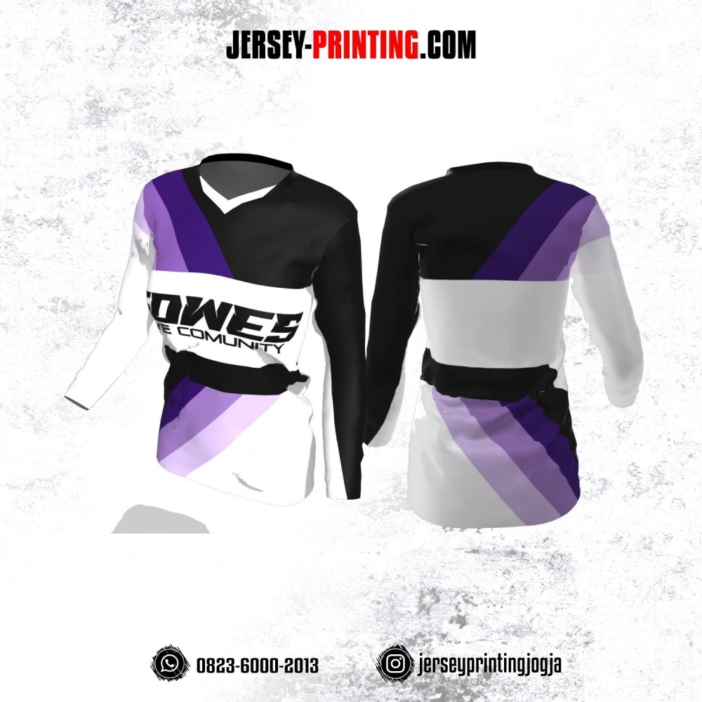 Jersey Cewek Gowes Sepeda Hitam Putih Corak Ungu Gradasi Lengan Panjang