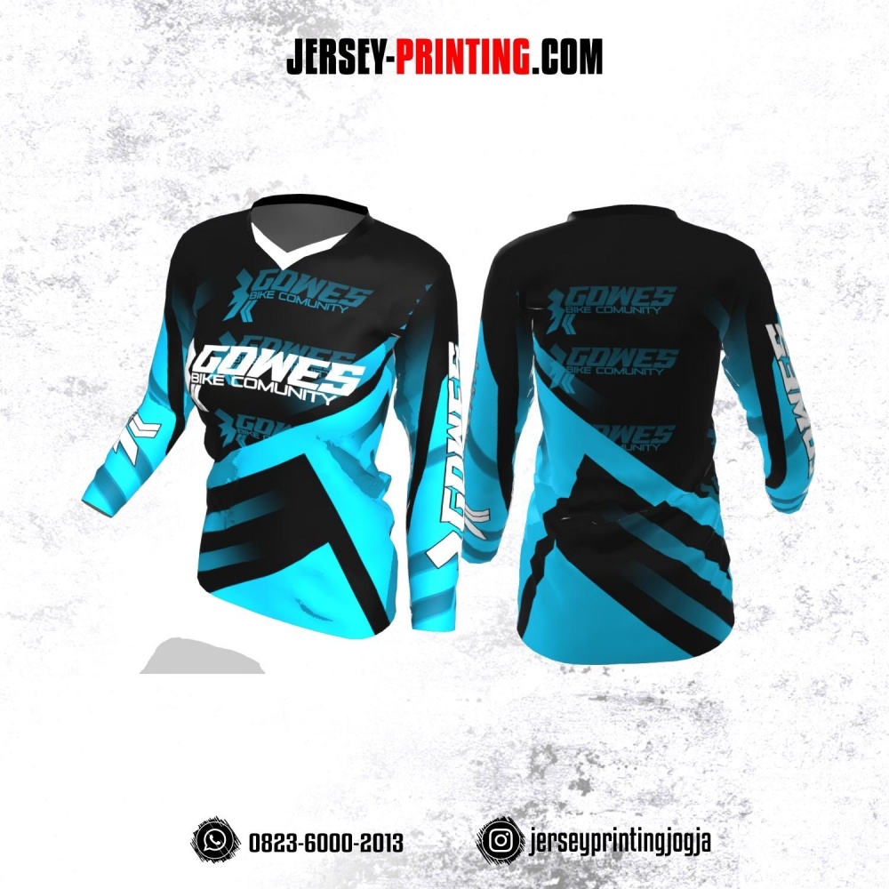 Jersey Cewek Gowes Sepeda Hitam Corak Biru Putih Lengan Panjang
