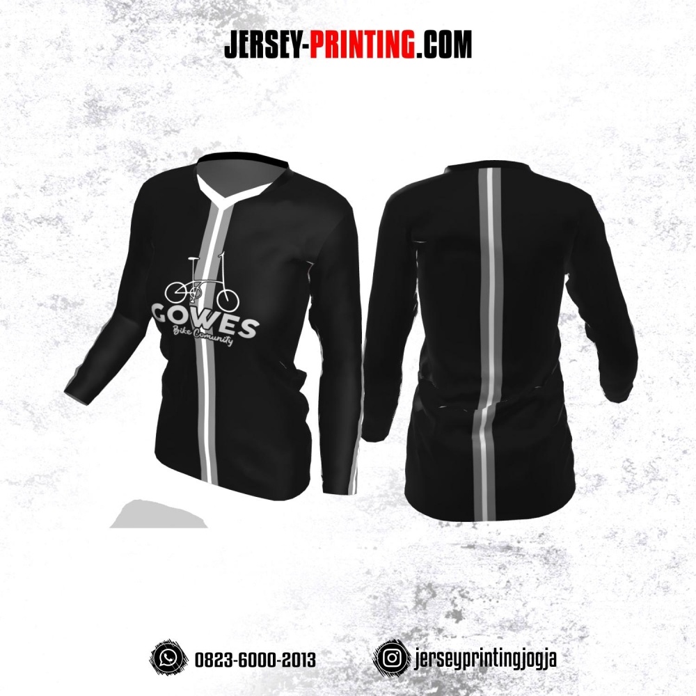 Jersey Cewek Gowes Sepeda Hitam Motif Line Abu-abu Putih Lengan Panjang