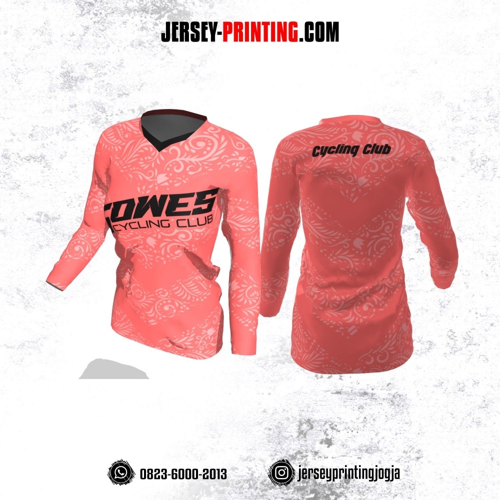 Jersey Cewek Gowes Sepeda Pink Salem Motif Batik Lengan Panjang