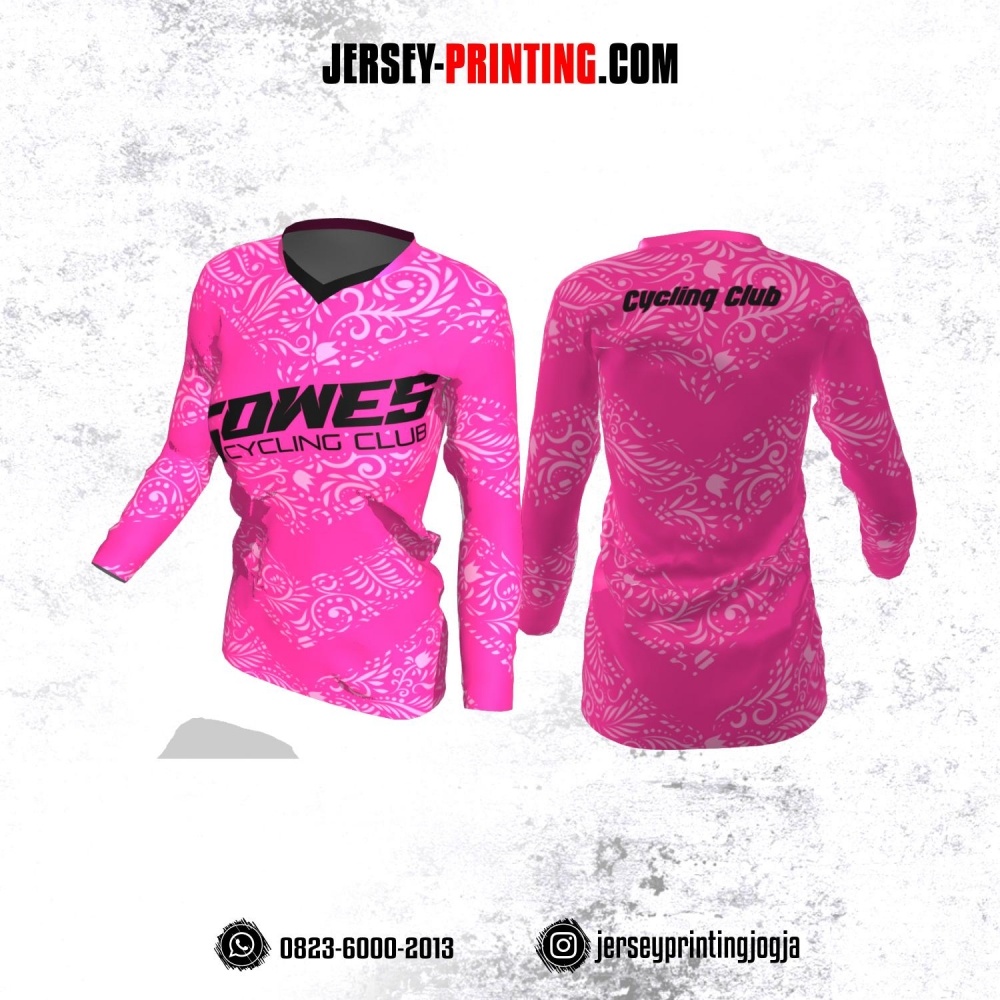 Jersey Cewek Gowes Sepeda Pink Motif Batik Lengan Panjang