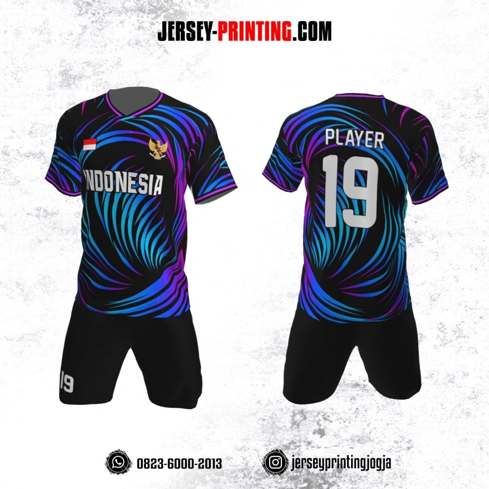 Jersey Futsal Hitam Corak Biru