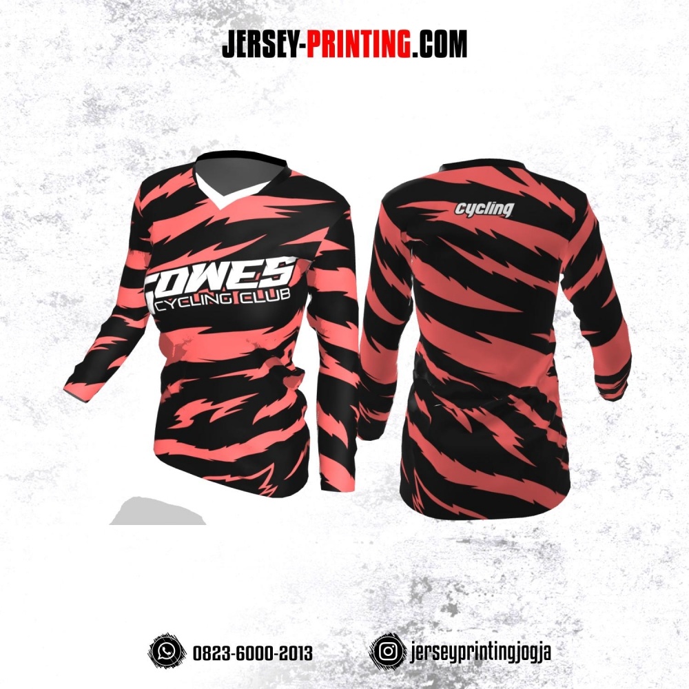 Jersey Cewek Gowes Sepeda Hitam Motif Kilat Pink Salem Lengan Panjang