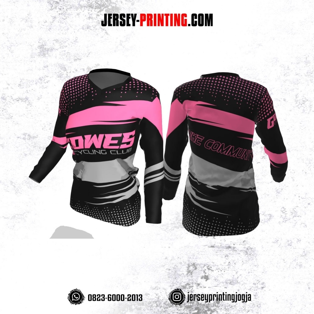 Jersey Cewek Gowes Sepeda Hitam Pink Abu-abu Motif Polkadot Lengan Panjang
