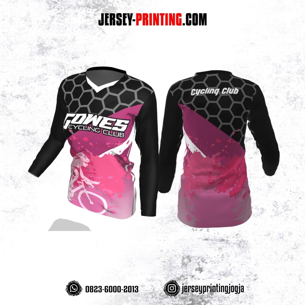 Jersey Cewek Gowes Sepeda Ungu Hitam Motif Honeycomb Abu-abu Lengan Panjang