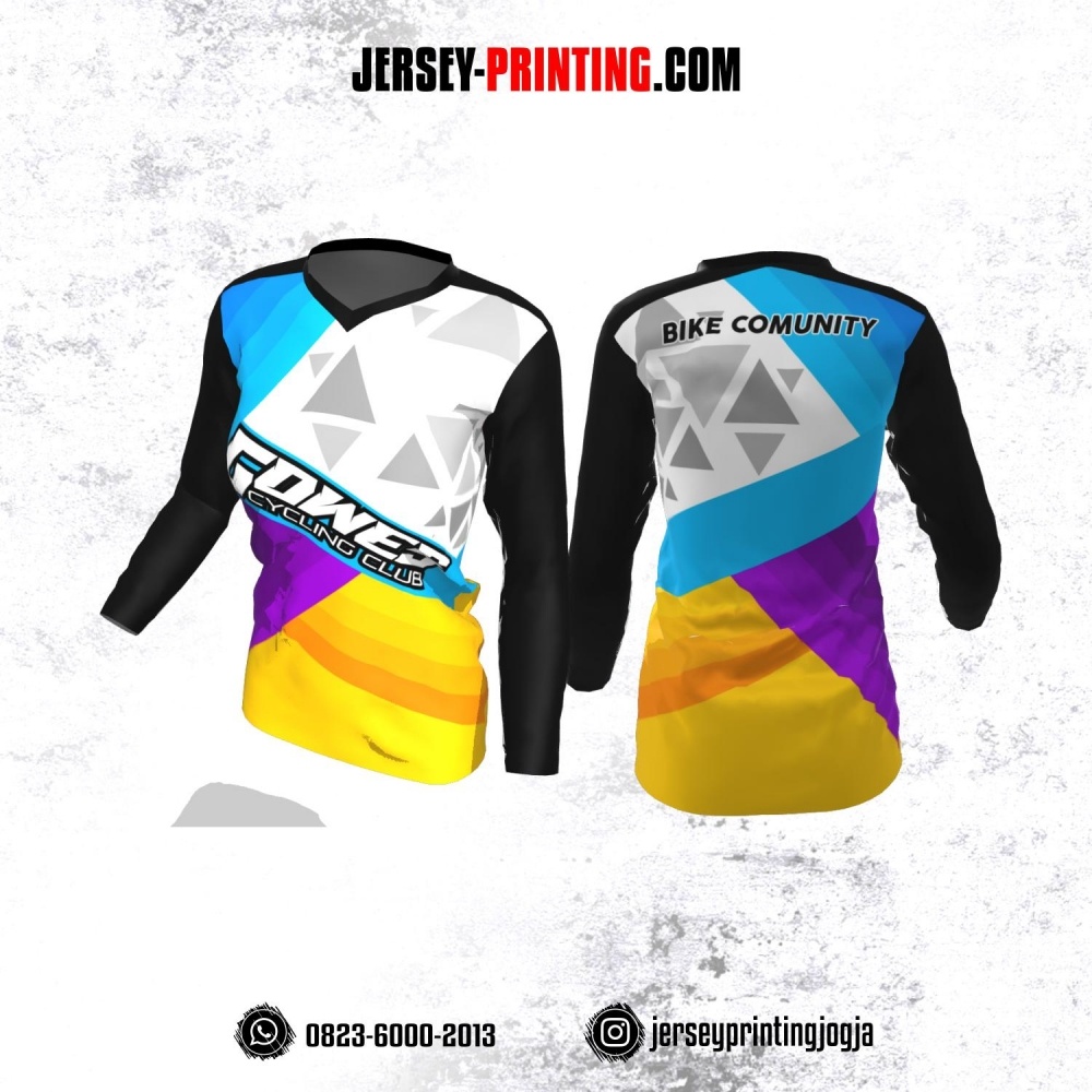 Jersey Cewek Gowes Sepeda Putih Hitam Kuning Biru Ungu Motif Geometris Lengan Panjang