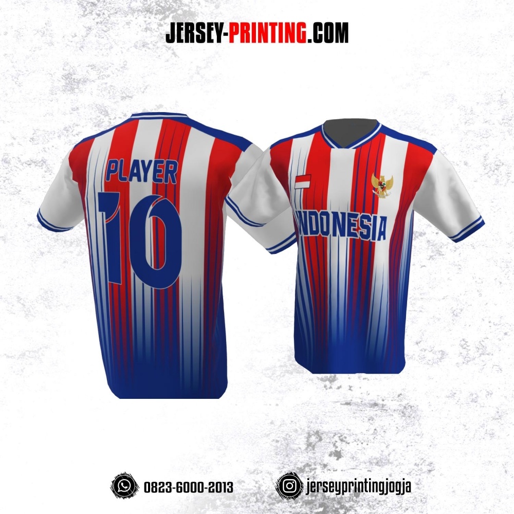 Jersey Atasan Badminton Volly Lari Futsal Putih Biru Merah Motif Stripe
