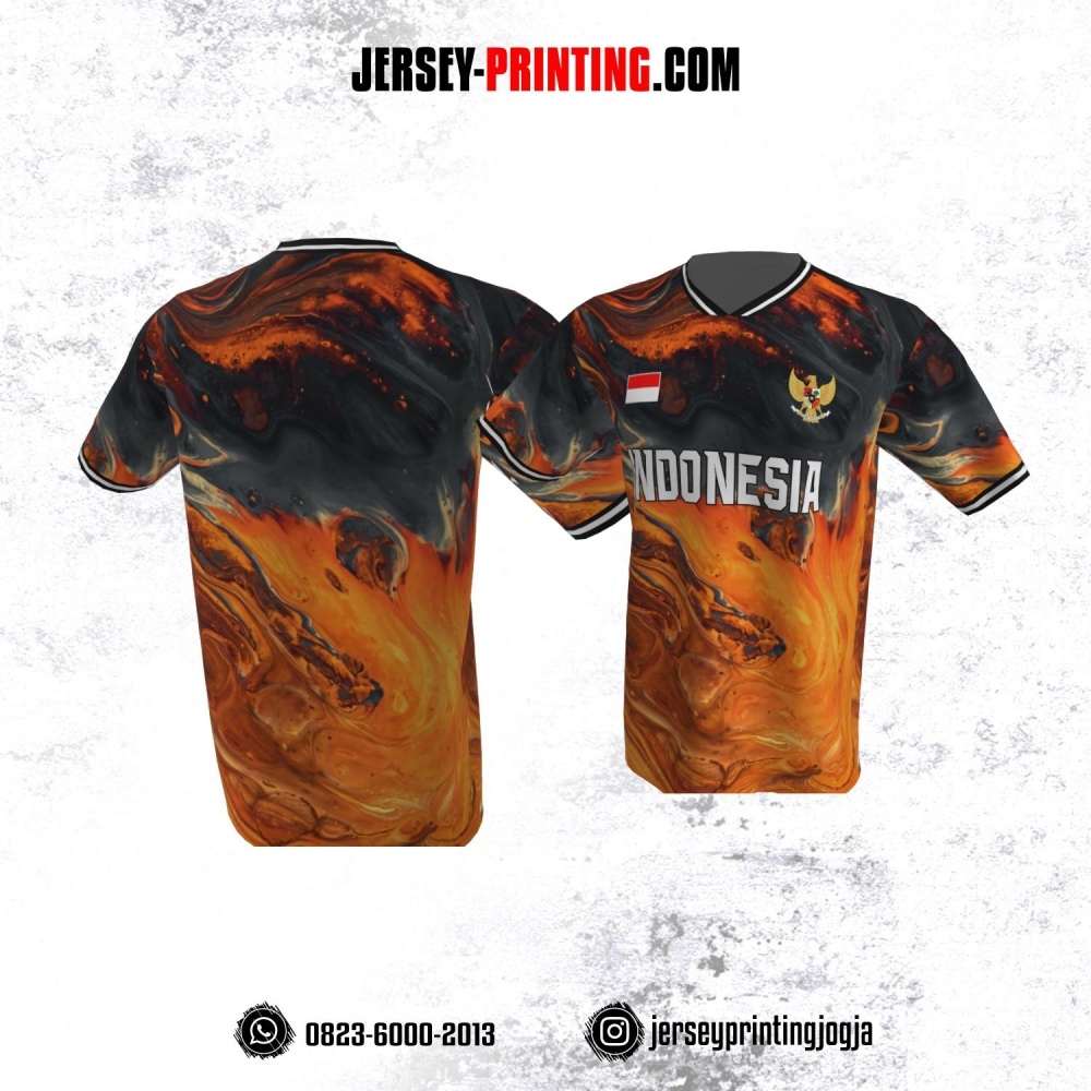 Jersey Atasan Badminton Volly Lari Futsal Orange Hitam Motif Minyak Vector
