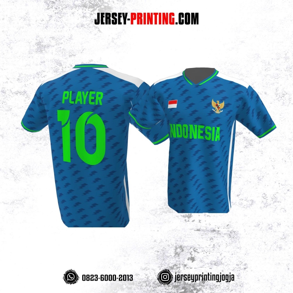 Jersey Atasan Badminton Volly Lari Futsal Biru Putih Hijau Motif Petir