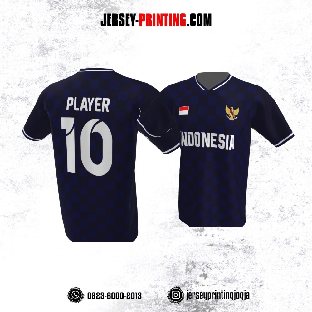 Jersey Atasan Badminton Volly Lari Futsal Dongker Putih Motif Kotak-kotak