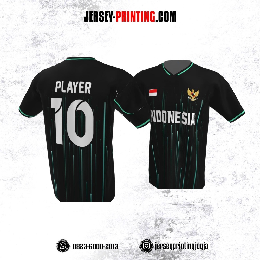 Jersey Atasan Badminton Volly Lari Futsal Hitam Motif Line Tosca