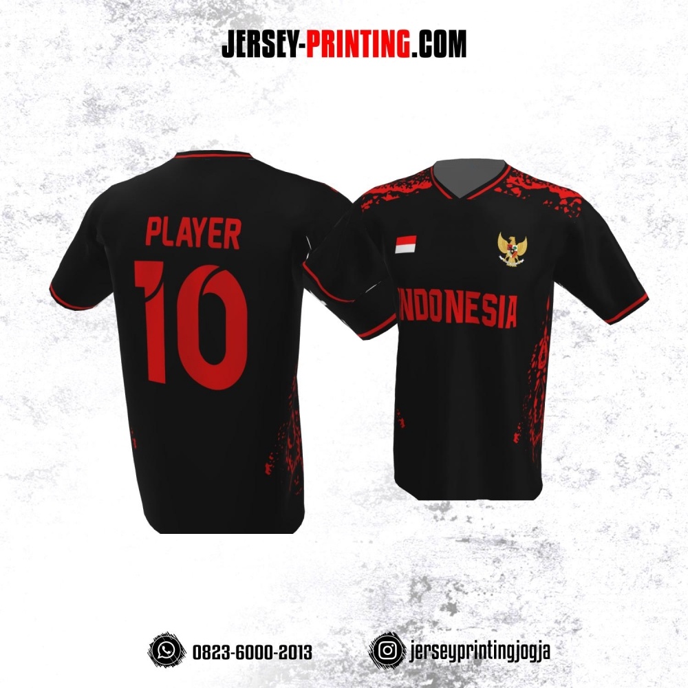 Jersey Atasan Badminton Volly Lari Futsal Hitam Motif Brush Merah