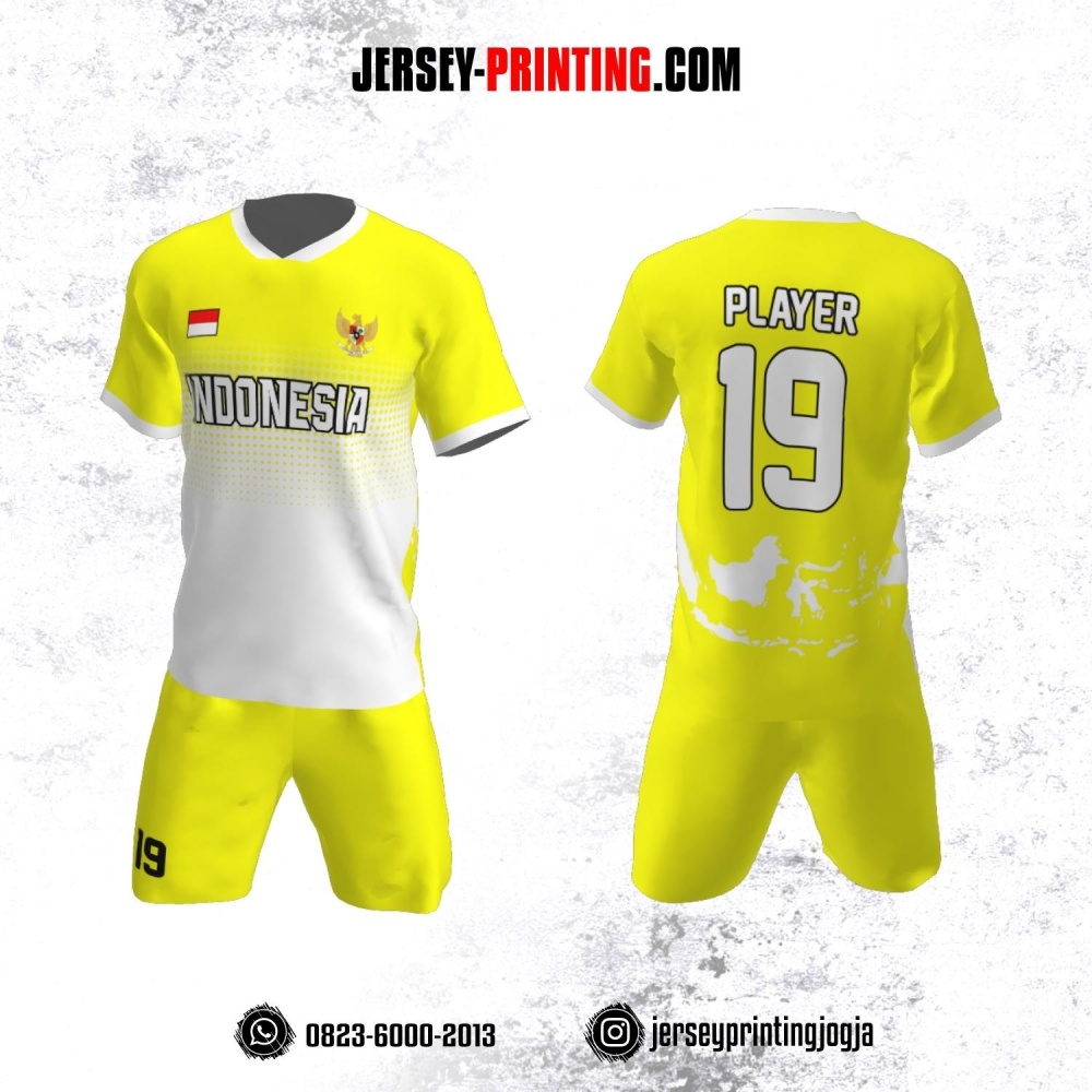 Jersey Futsal Kuning Stabilo Motif Peta Indonesia Putih