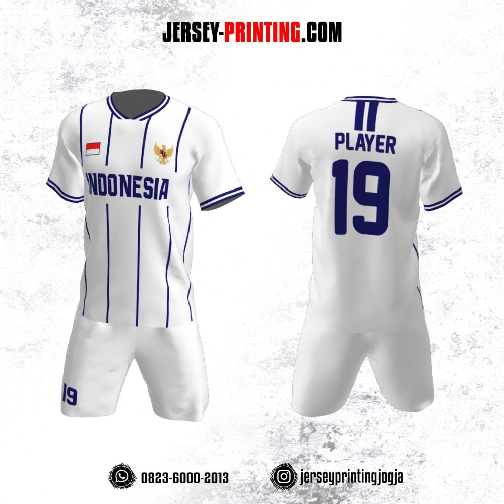 Jersey Futsal Putih Motif Stripe Navy