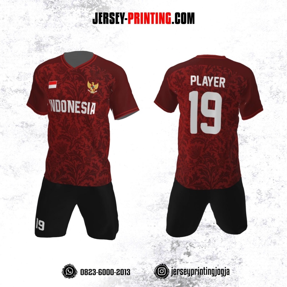 Jersey Futsal Motif Daun Maroon