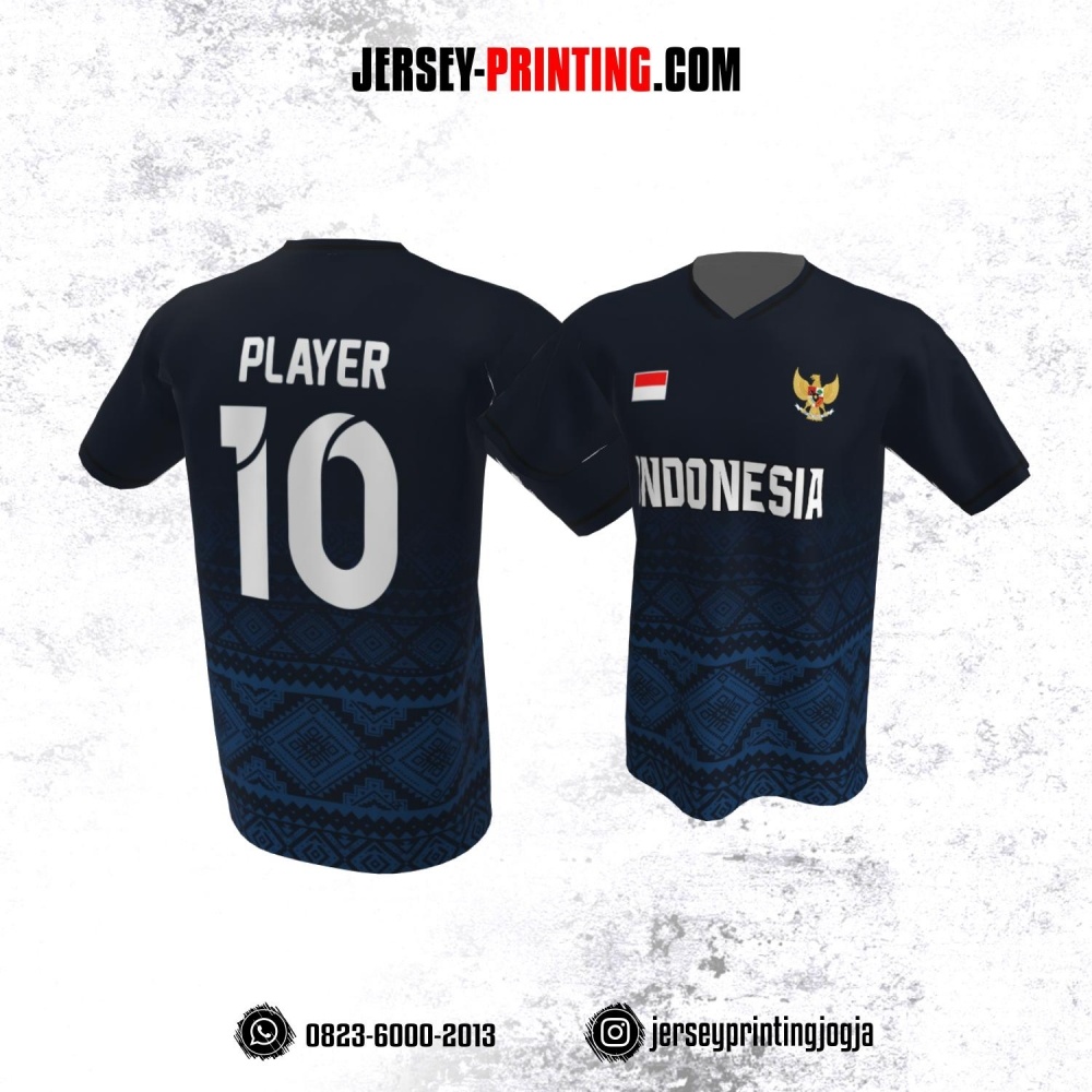 Jersey Atasan Badminton Volly Lari Futsal Hitam Biru Motif batik