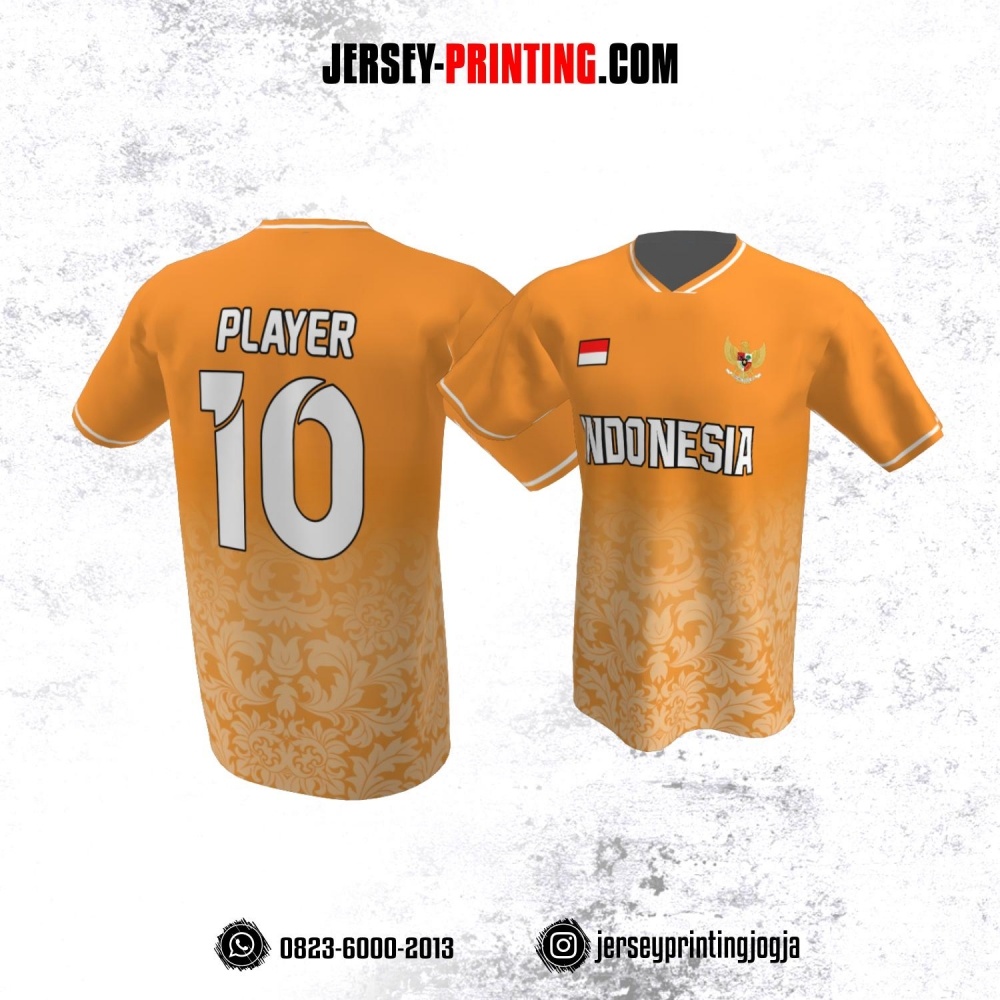 Jersey Atasan Badminton Volly Lari Futsal Orange Putih Motif Batik