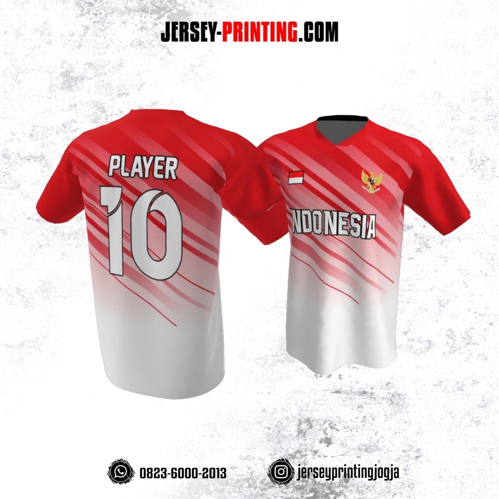 Jersey Atasan Badminton Volly Lari Futsal Merah Putih Motif Garis