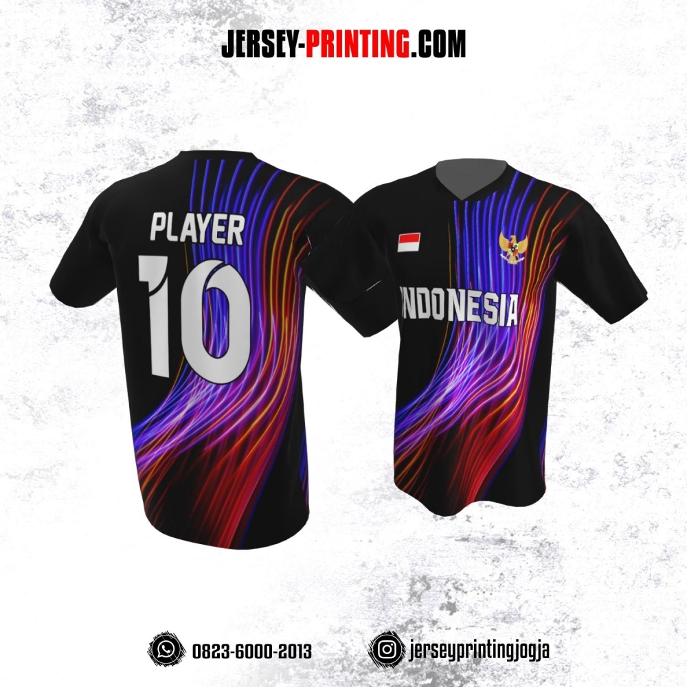 Jersey Atasan Badminton Volly Lari Futsal Hitam Motif Line Abstrak Ungu Merah