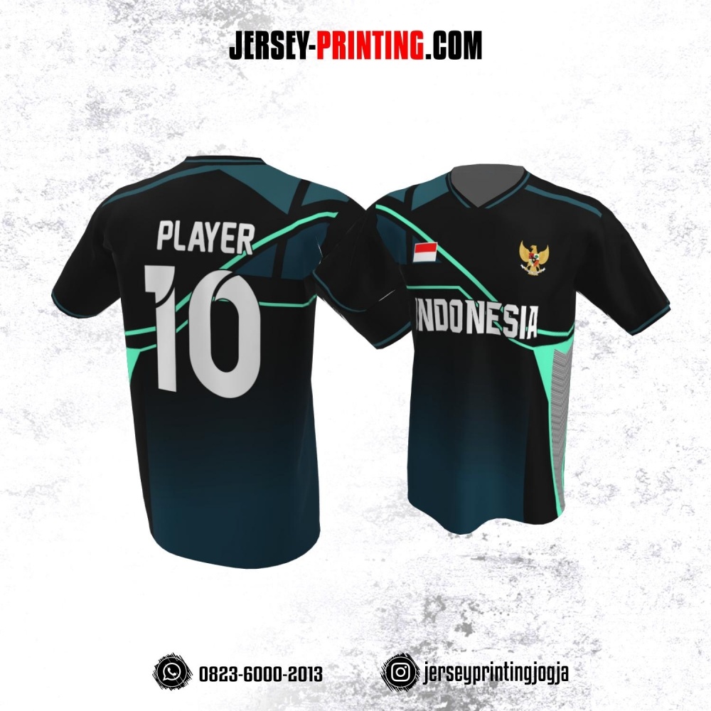 Jersey Atasan Badminton Volly Lari Futsal Hitam Corak Teal Tosca
