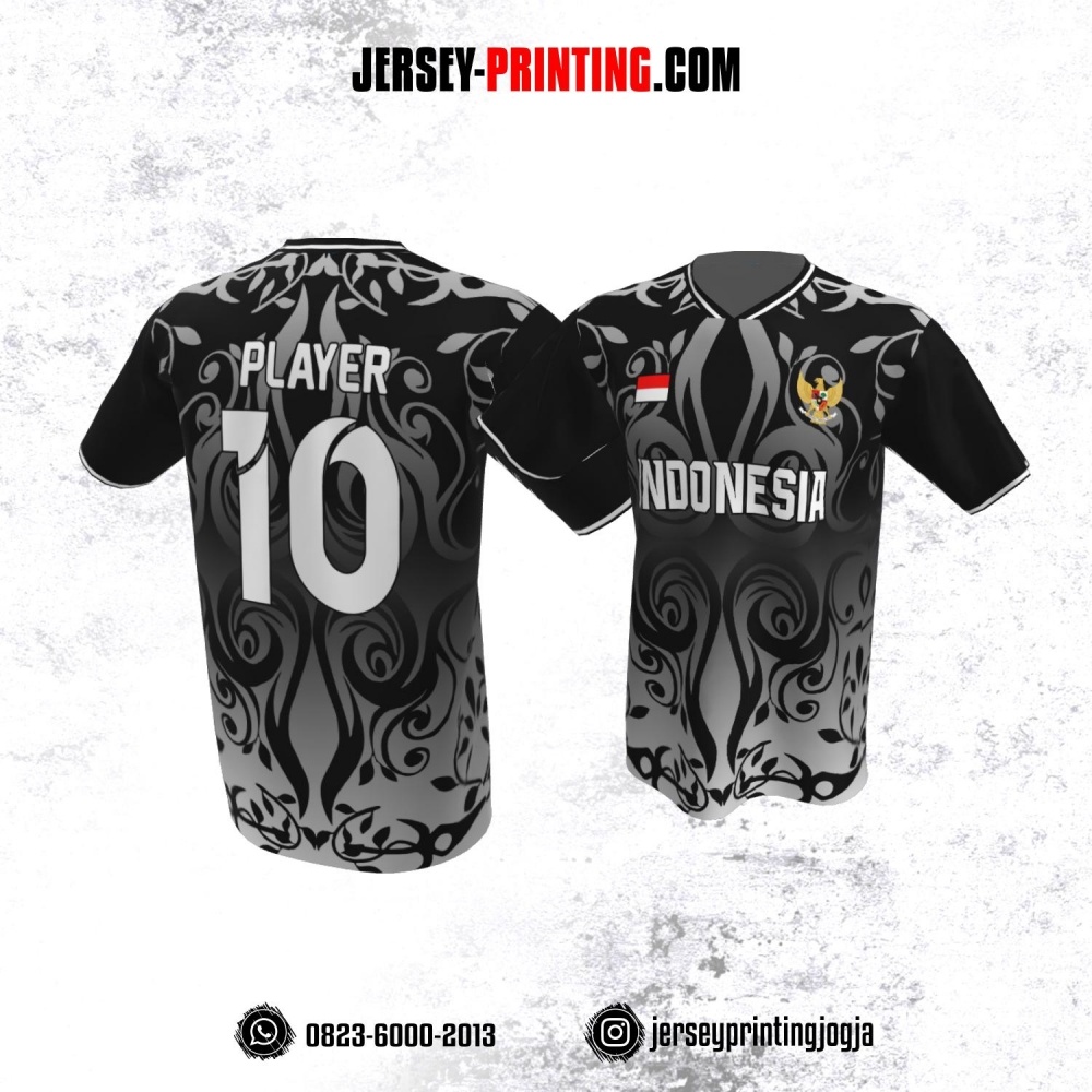 Jersey Atasan Badminton Volly Lari Futsal Hitam Abu-abu Motif Batik