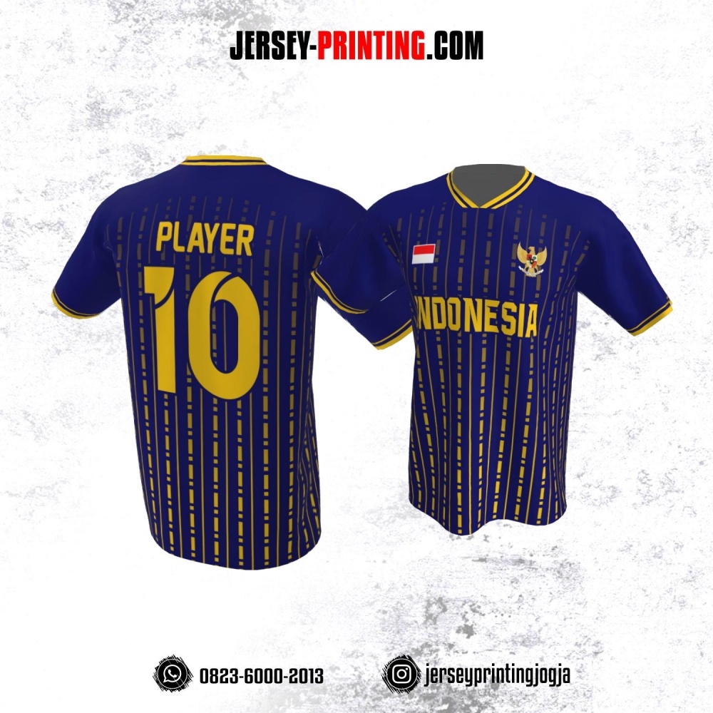 Jersey Atasan Badminton Volly Lari Futsal Navy Motif Strip Kuning