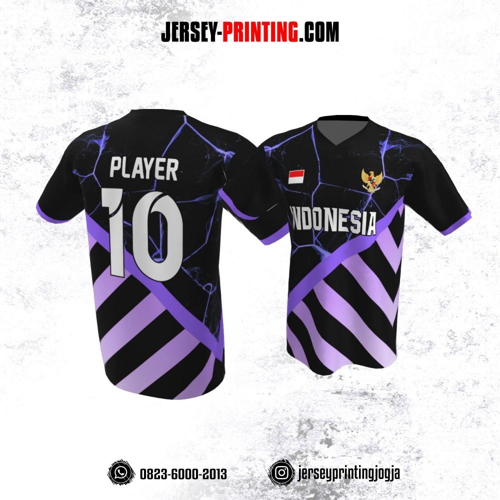 Jersey Atasan Badminton Volly Lari Futsal Hitam Motif Strip dan Asap Ungu Lilac