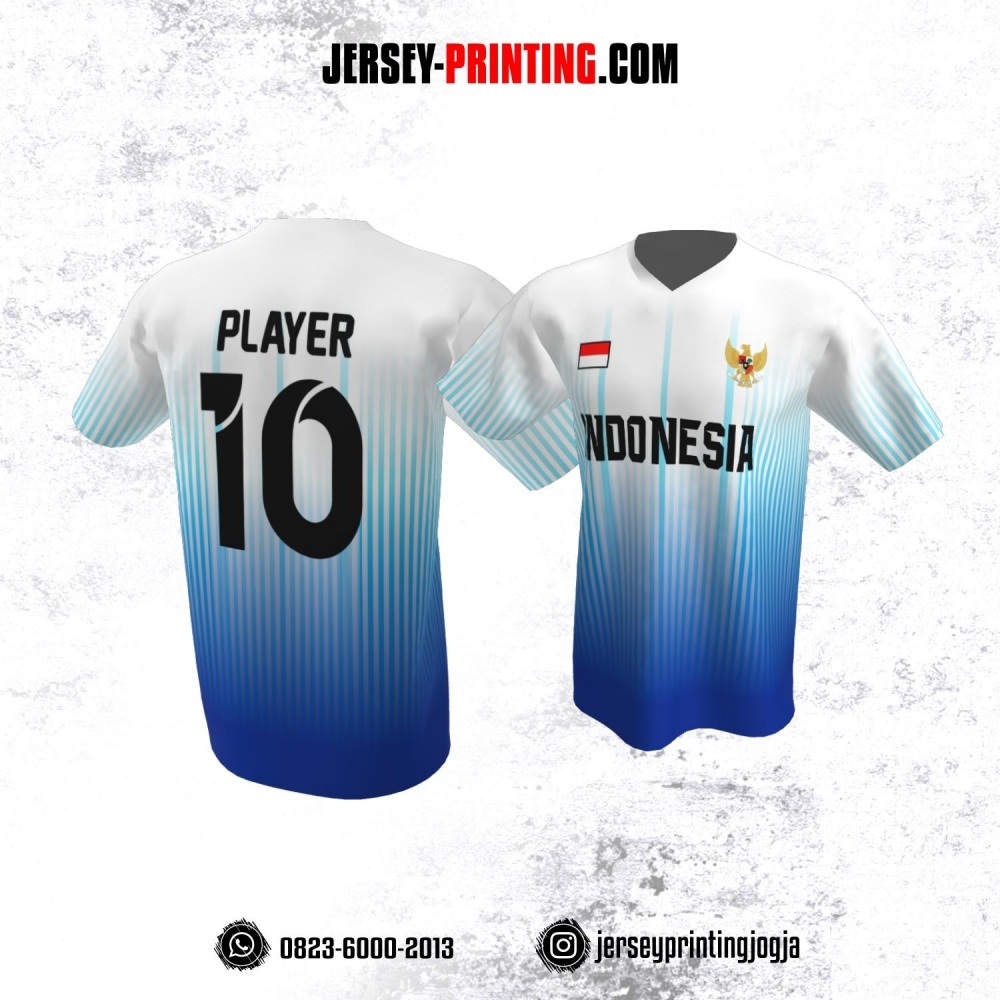 Jersey Atasan Badminton Volly Lari Futsal Putih Biru Motif Garis