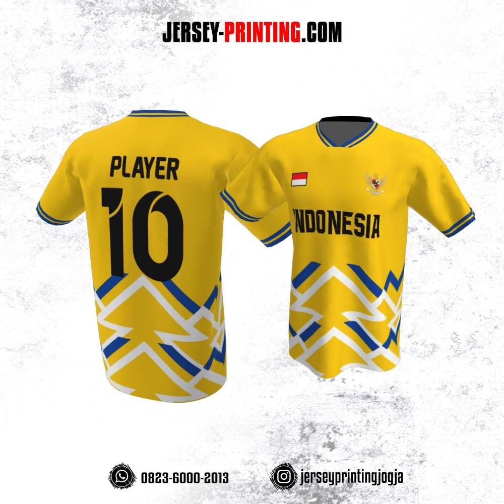 Jersey Atasan Badminton Volly Lari Futsal Kuning Motif Garis Biru Putih