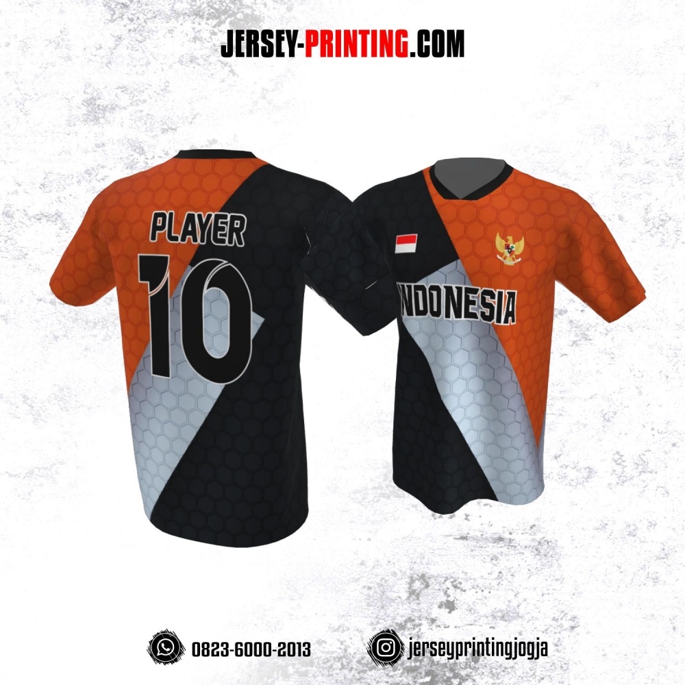 Jersey Atasan Badminton Volly Lari Futsal Hitam Orange Abu Motif Honeycomb