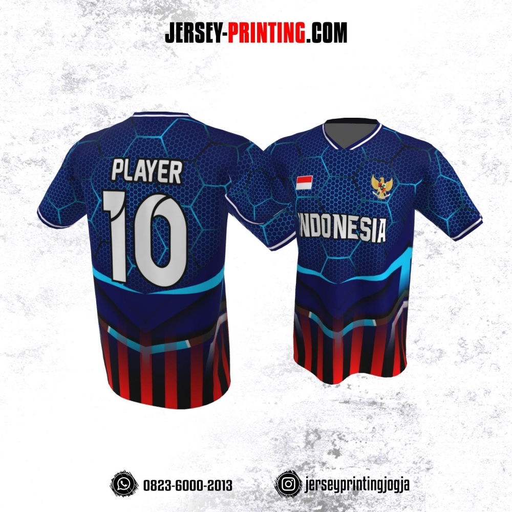 Jersey Atasan Badminton Volly Lari Futsal Navy Merah Motif Honeycomb