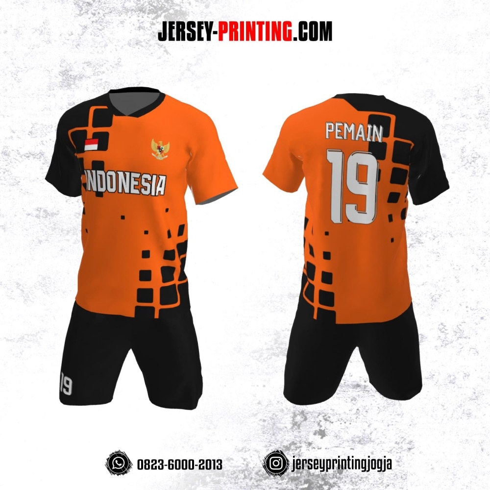 Jersey Futsal Orange Motif Geometris Hitam