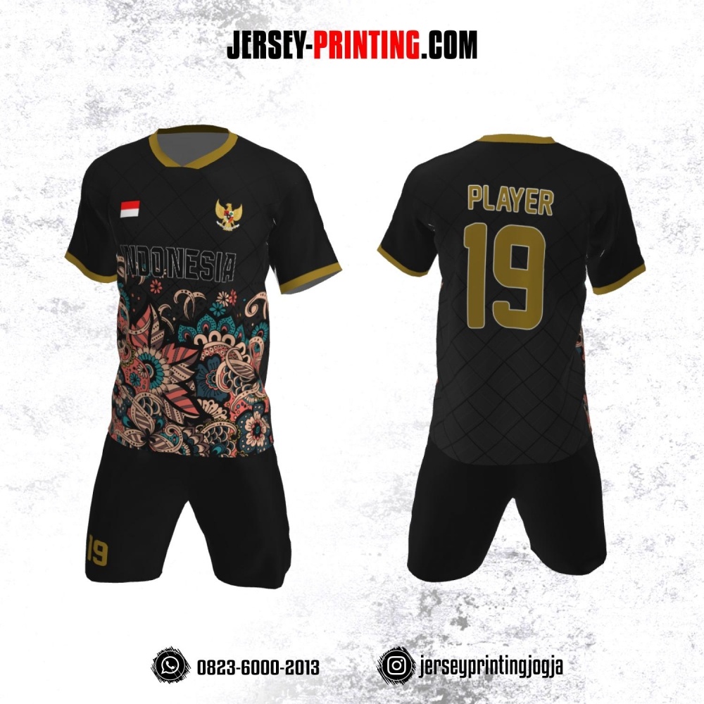 Jersey Futsal Hitam Motif Batik Orange Biru
