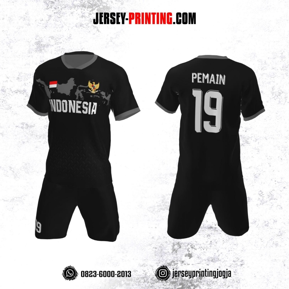 Jersey Futsal Hitam Motif Peta Indonesia Abu-abu