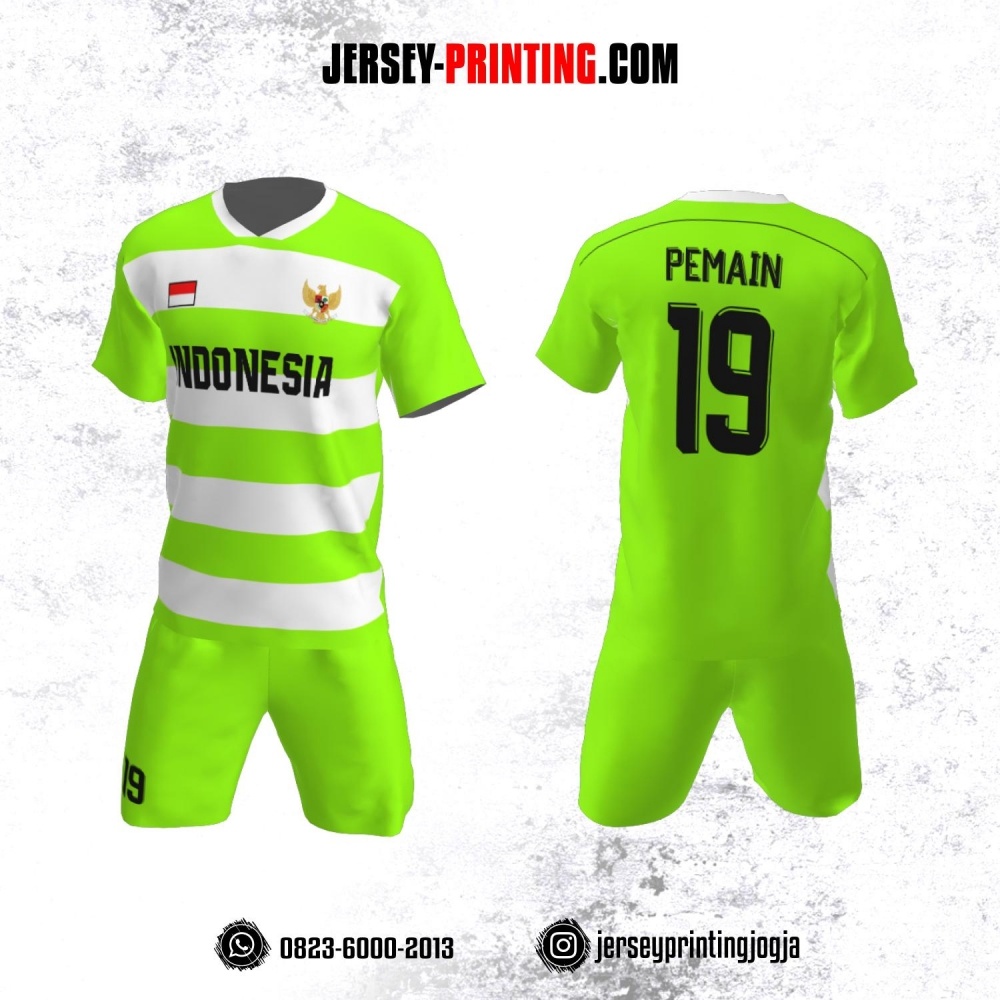 Jersey Futsal Hijau Neon Motif Stripe Putih