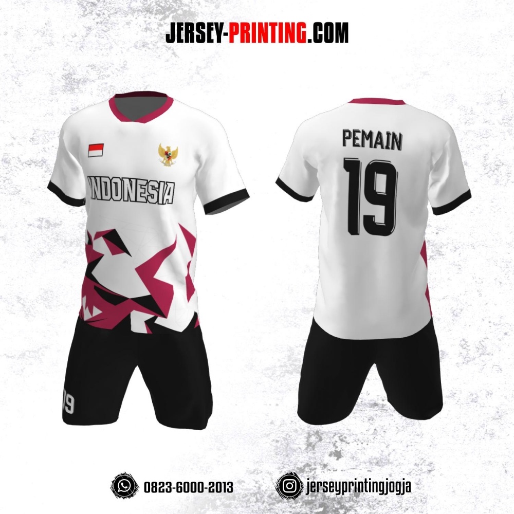 Jersey Futsal Putih Motif Abstrak Hitam Pink