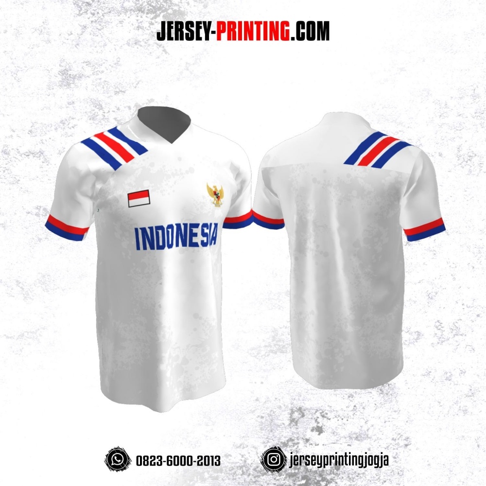 Jersey Futsal Putih Motif Strip Biru Merah