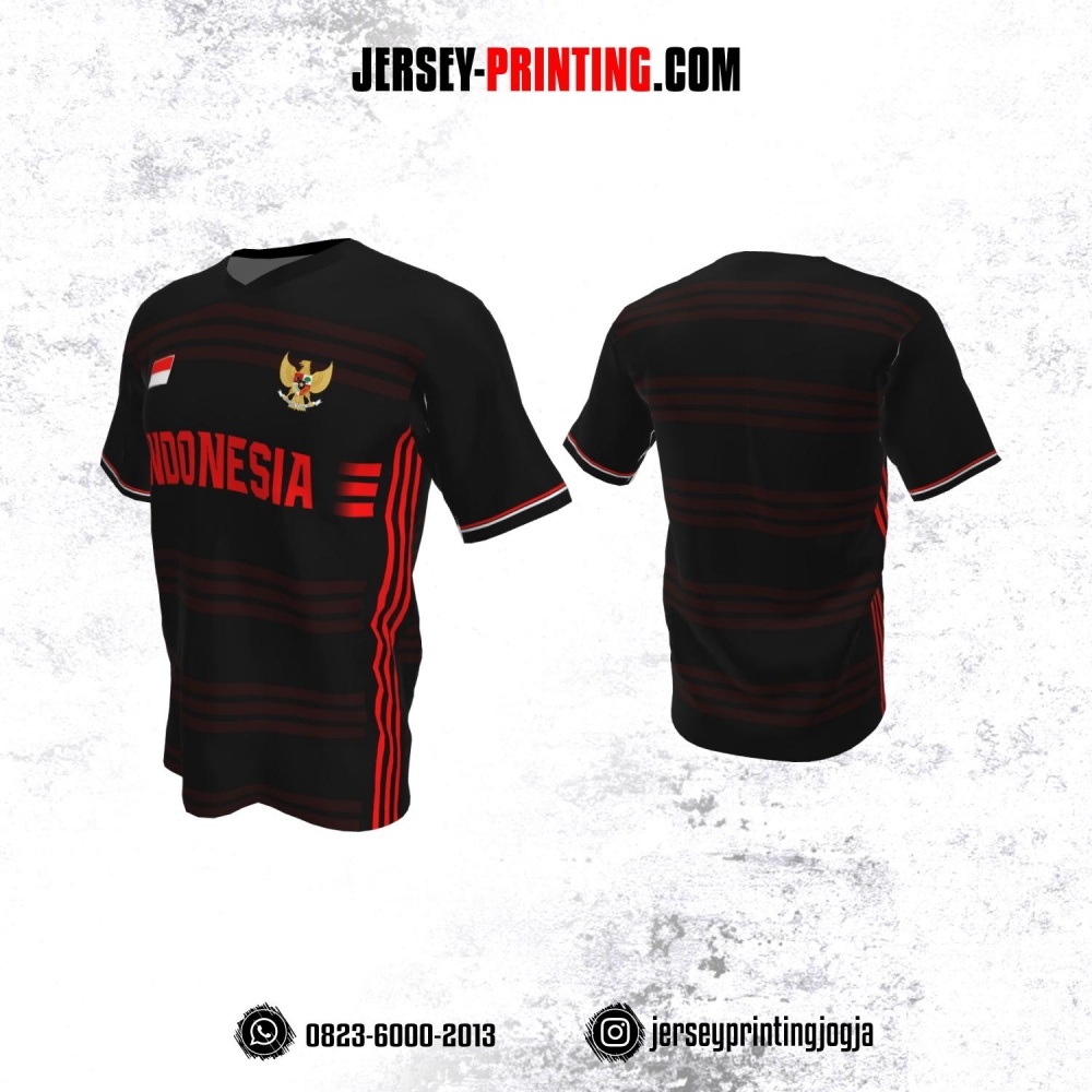 Jersey Futsal Hitam Motif Garis Merah Maroon
