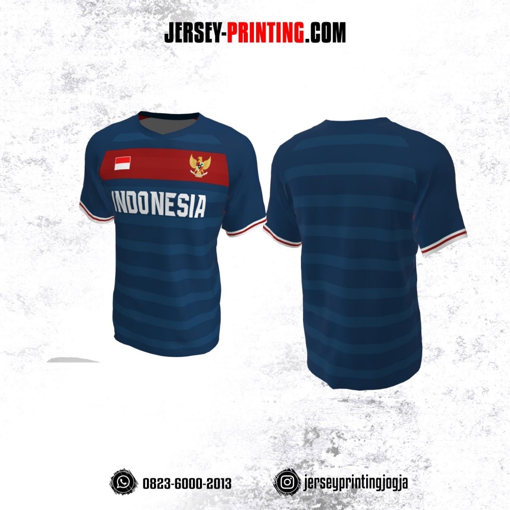 Jersey Futsal Dongker Merah Motif Stripe