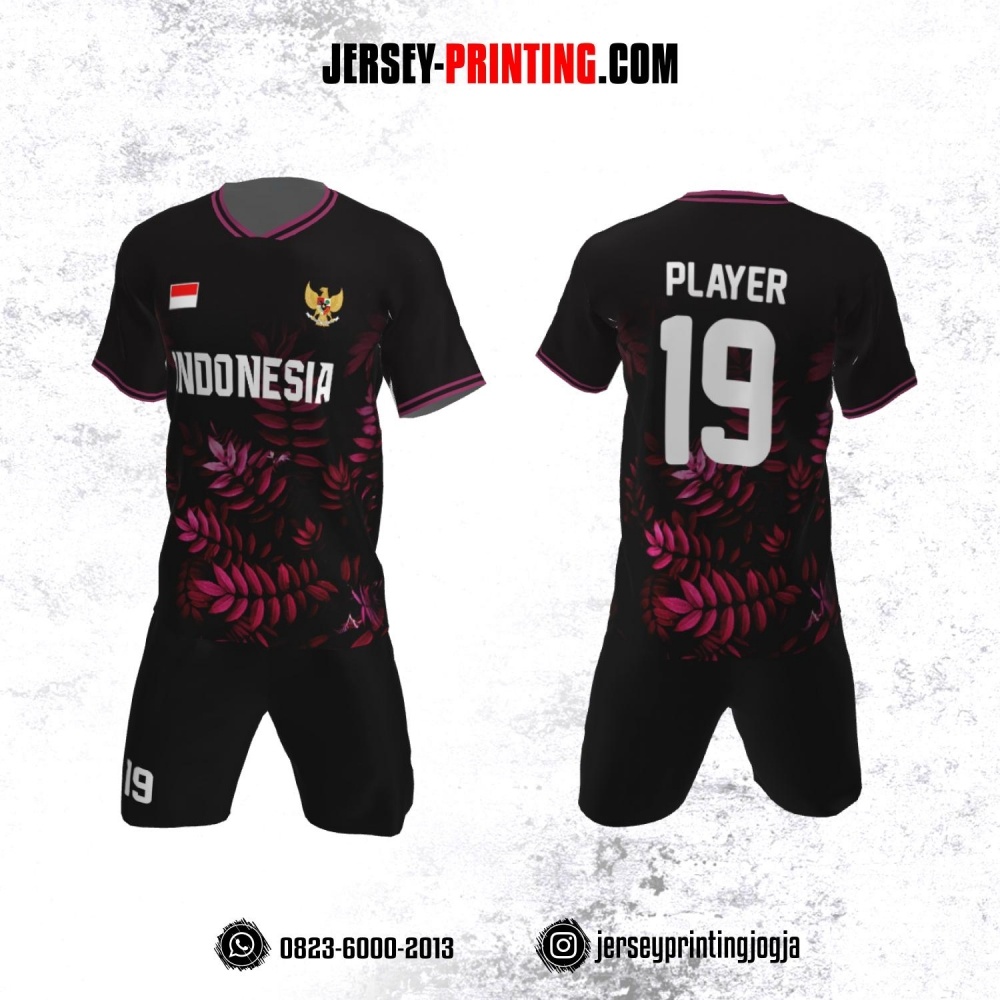 Jersey Futsal Hitam Corak Daun Pink