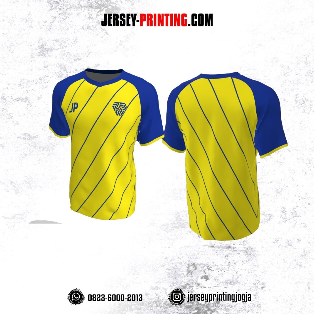 Jersey Futsal Kuning Motif Garis Diagonal Biru