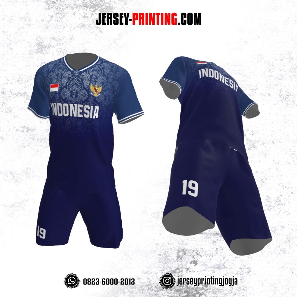 Jersey Futsal Motif Batik Biru Tua