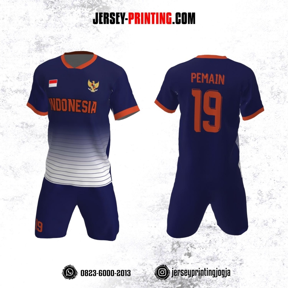 Jersey Futsal Dongker Putih Orange Motif Garis