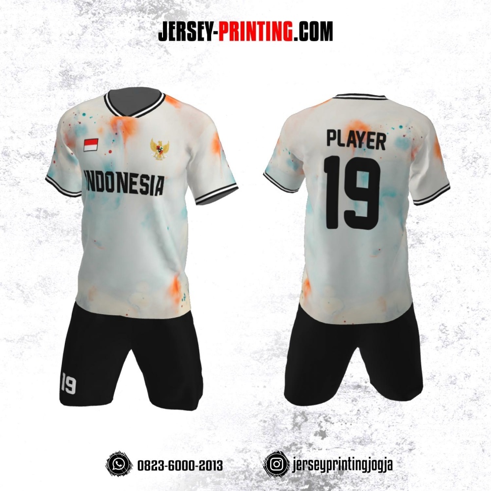 Jersey Futsal Putih Semprotan Pilox Orange Tosca