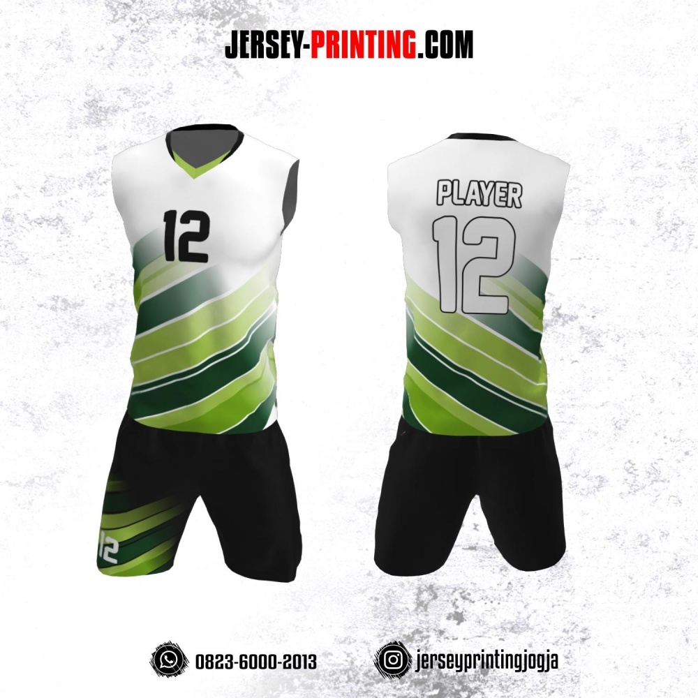 Jersey Baju Volly Tanpa Lengan Putih Corak Hijau Kombinasi