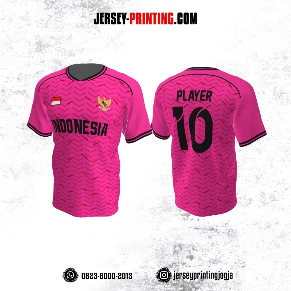 Jersey Atasan Badminton Volly Lari Futsal Pink Merah Hitam Motif Strip