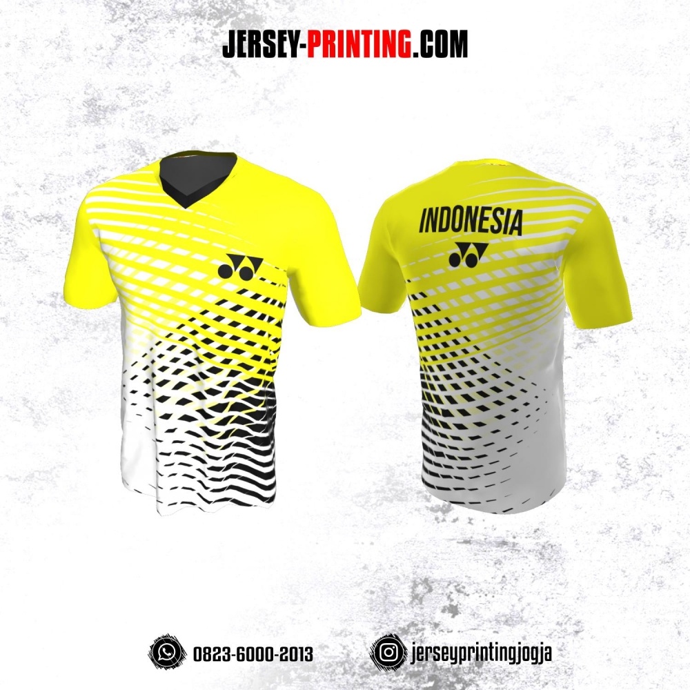 Jersey Badminton Putih Kuning Hitam Motif Garis