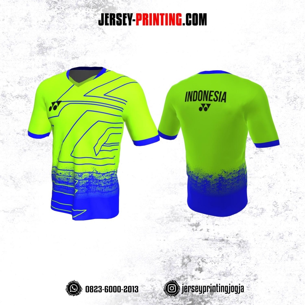 Jersey Badminton Hijau Biru Motif Garis